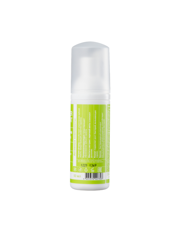 Освежающий ополаскиватель в формате пенки. Пенка проникает в труднодоступные места и удаляет частички пищи после еды и напитков. Борется с вредоносными бактериями, укрепляет десны. Освежает дыхание. Обладает противокариесным и противовоспалительным действиями.