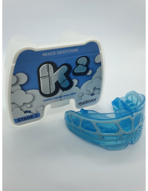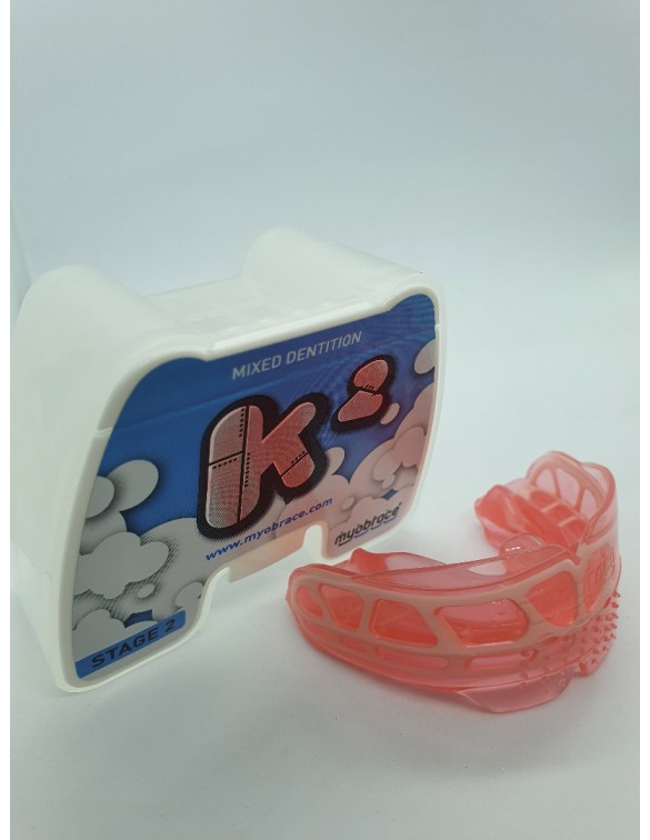Серия K от Myobrace® для детей предназначена для исправления прикуса в возрасте от 6 до 10 лет. В неё входит три съёмных миофункциональных аппарата (их также называют капы, трейнеры), соответствующие трём этапам лечения: